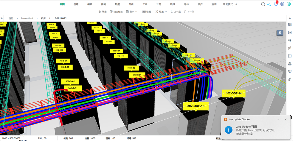 3D场景下机柜之间的连线就直接两点连接直线,是吗?