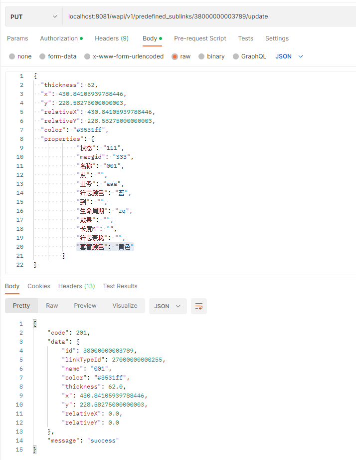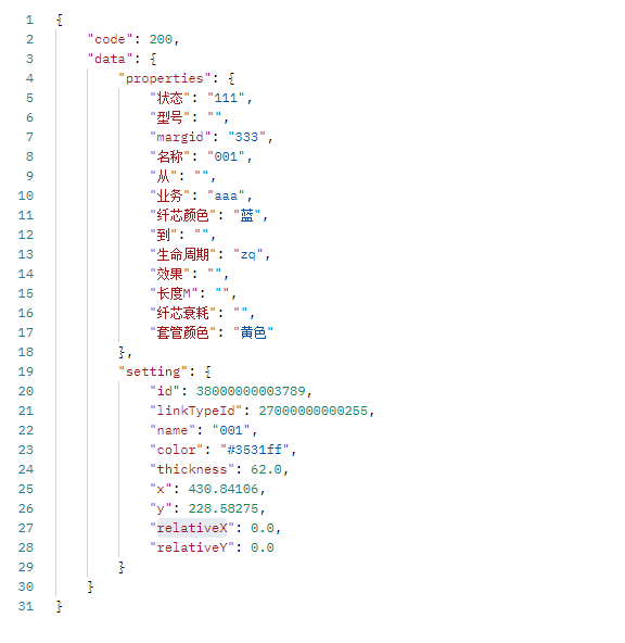 properties | Map<String,String> | {"纤芯颜色":"蓝", "套管颜色":"黄"} | 否 | 属性字段 |