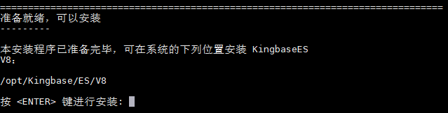 KingbaseES默认的安装目录是 /opt/Kingbase/ES/V8 。如果不存在,您需要使用root用户先创建该目录,并赋予kingbase用户对该目录的读写权限。
