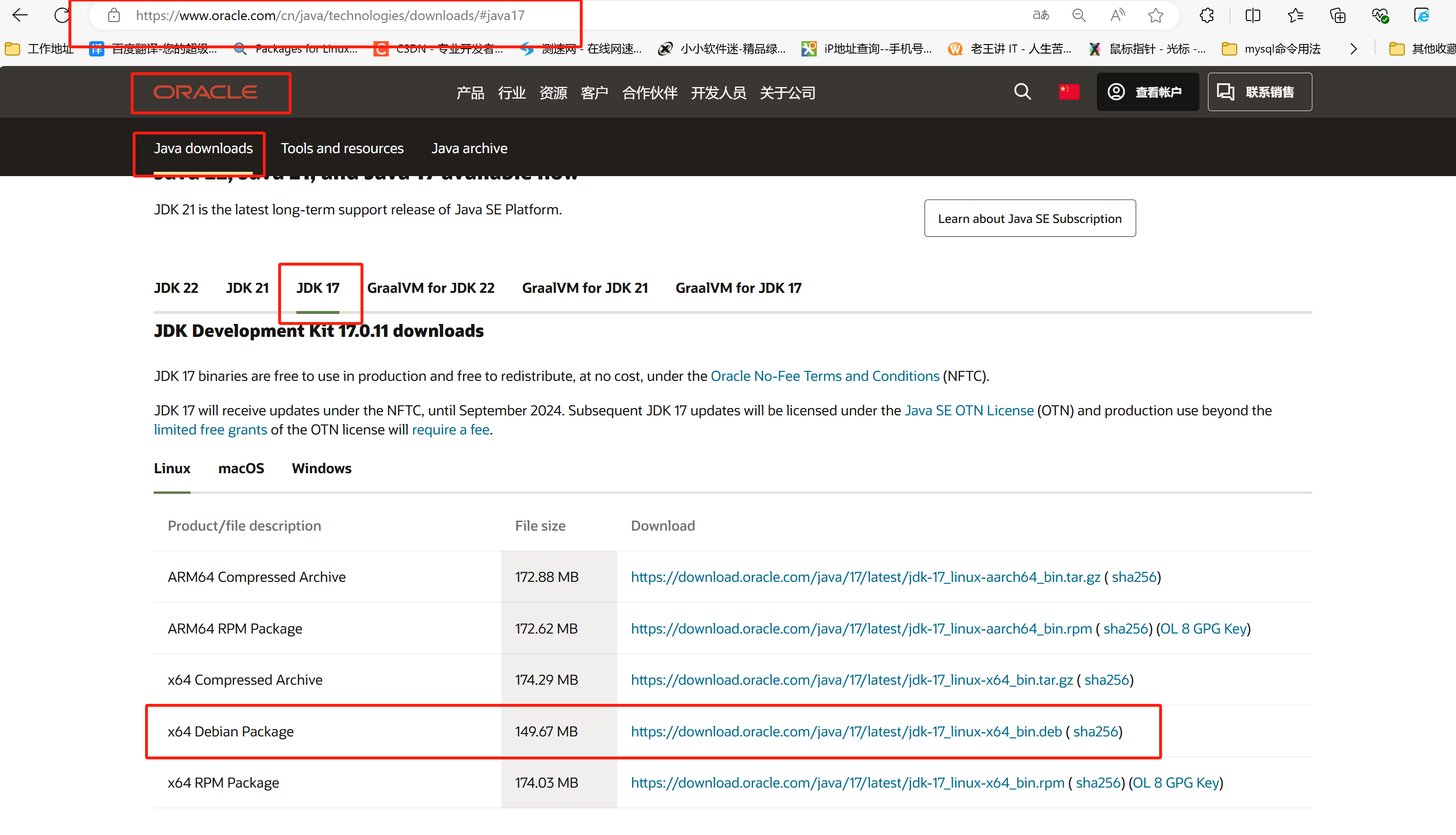 下载地址:https://www.oracle.com/cn/java/technologies/downloads/#java17