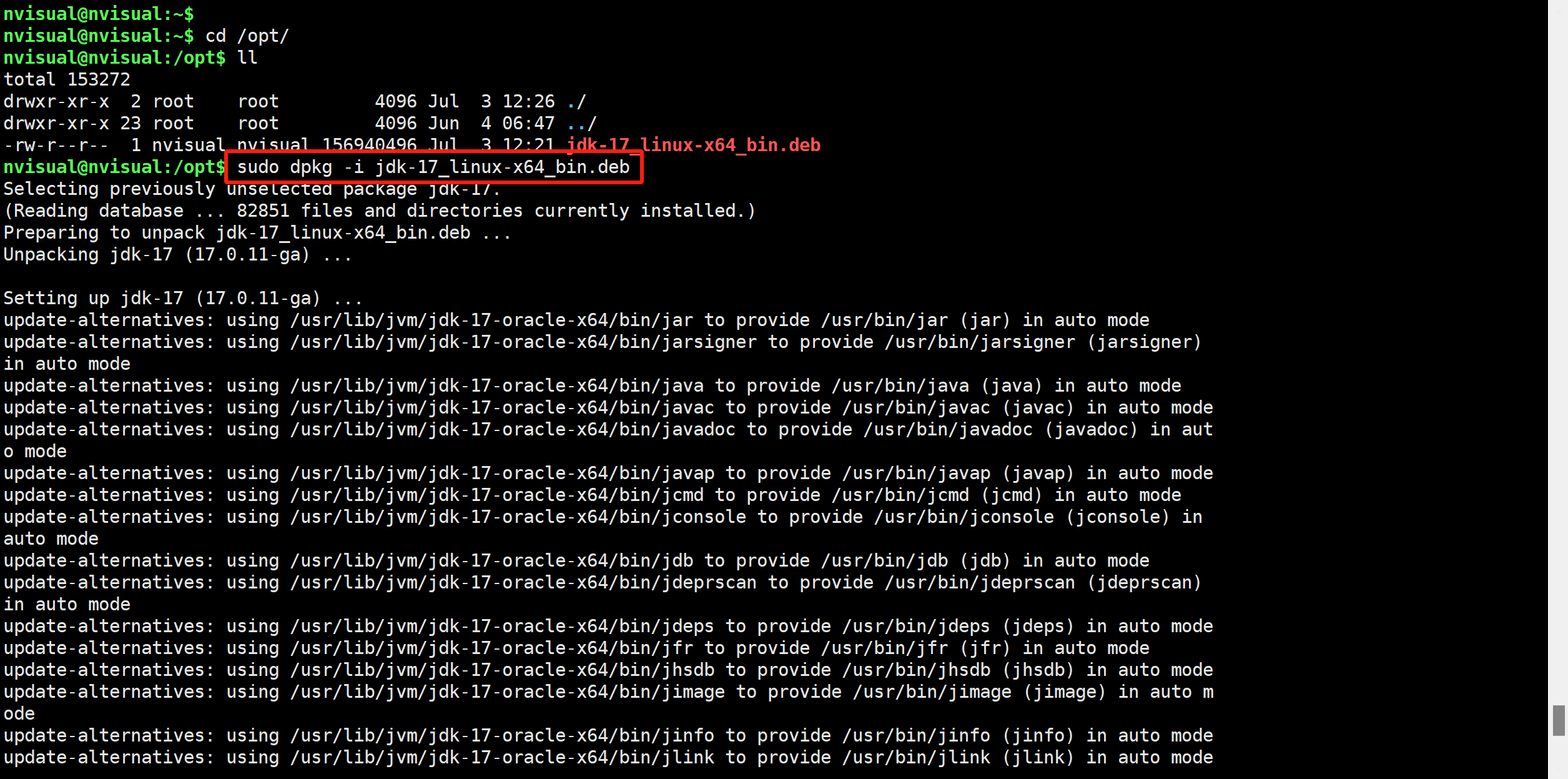 下载的文件名称:jdk-17_linux-x64_bin.deb