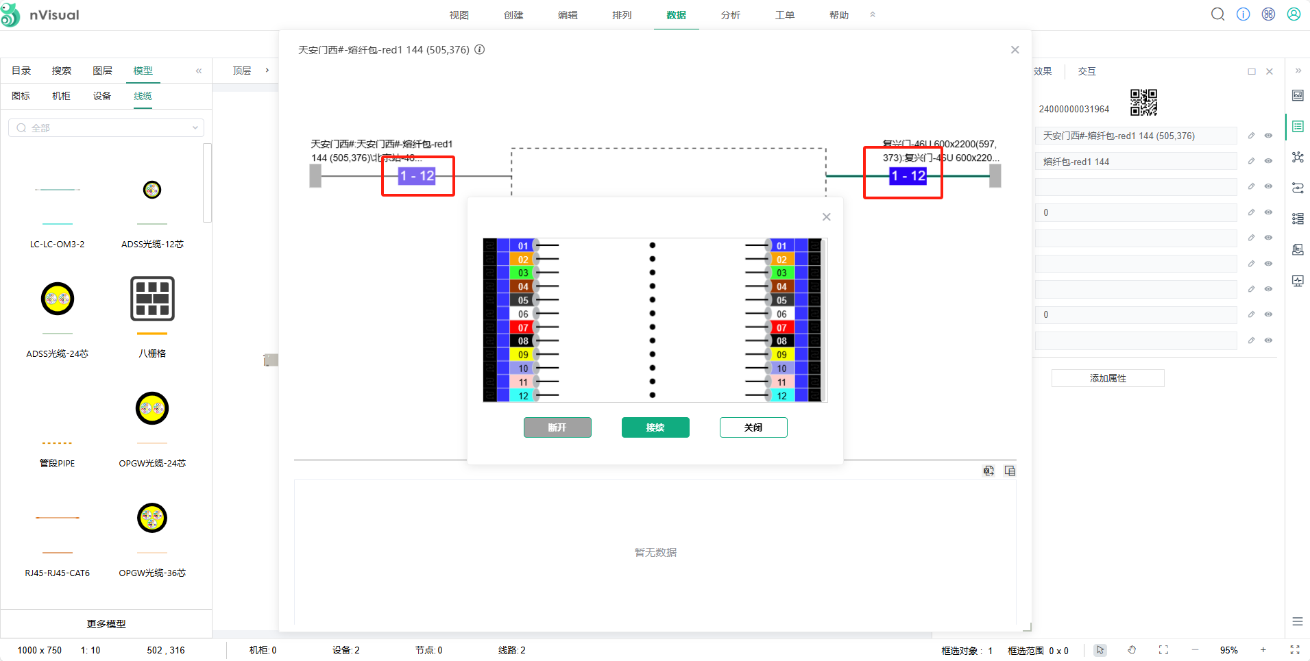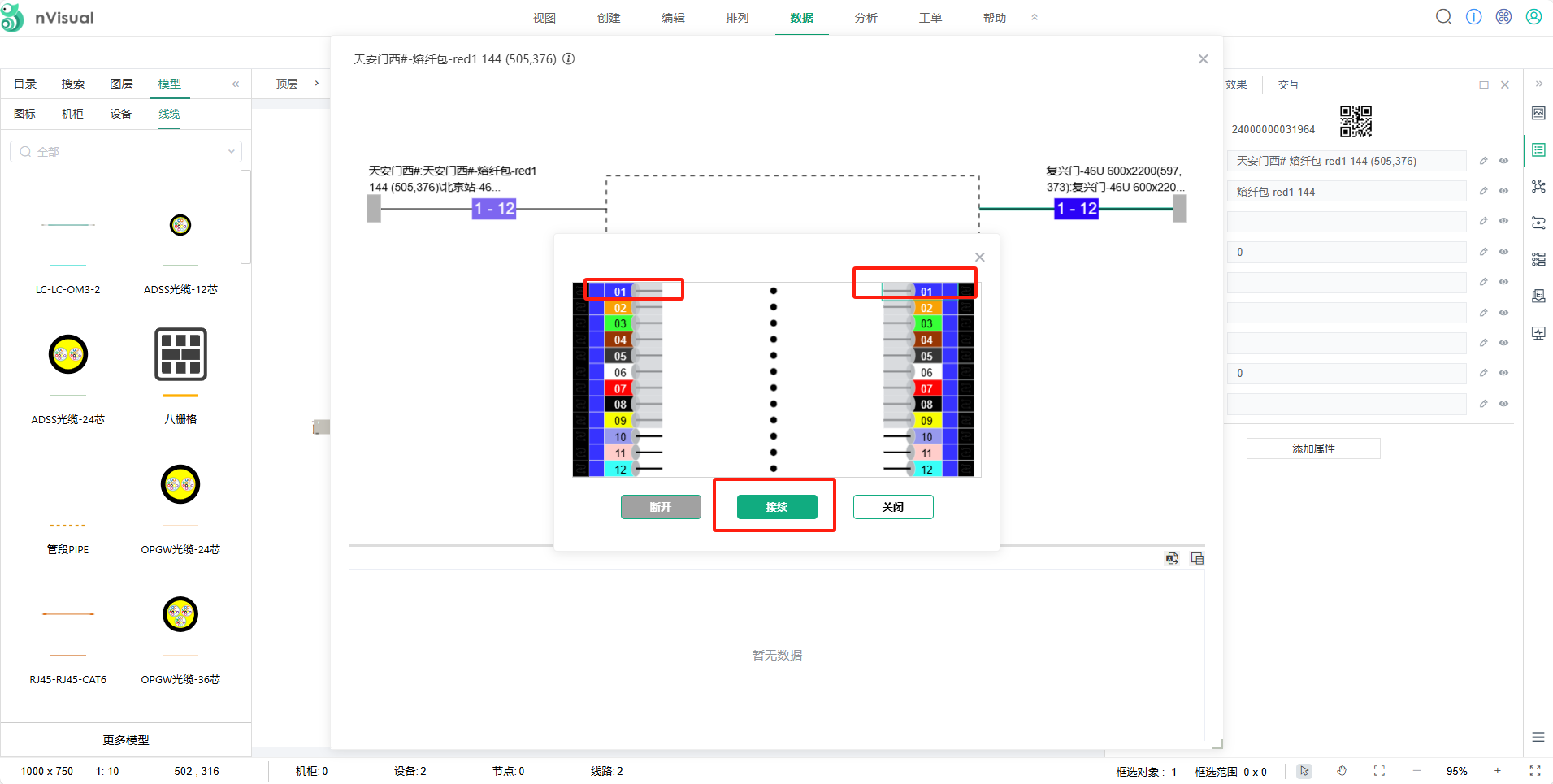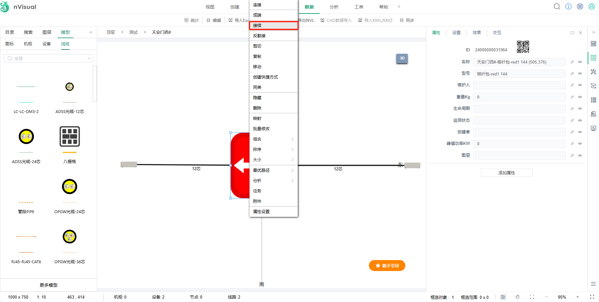 选中熔纤包右键点击-----接续