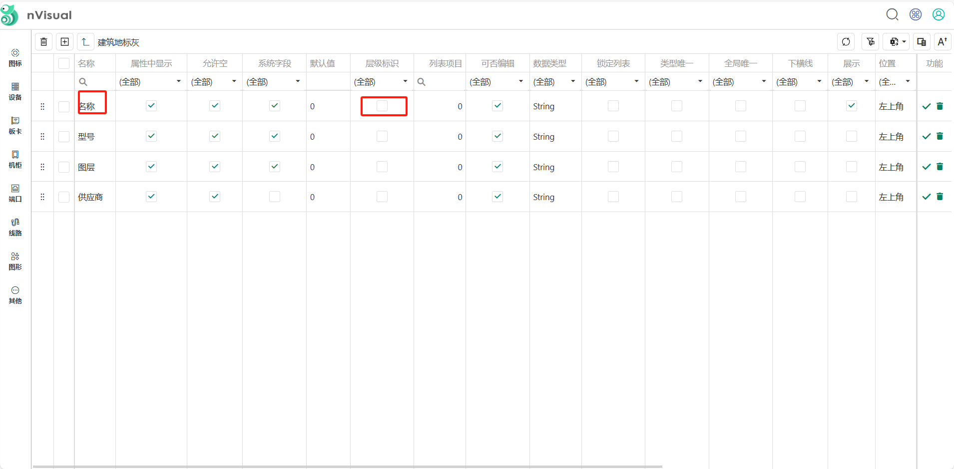 1.2 点击字段勾选名称处层级标识