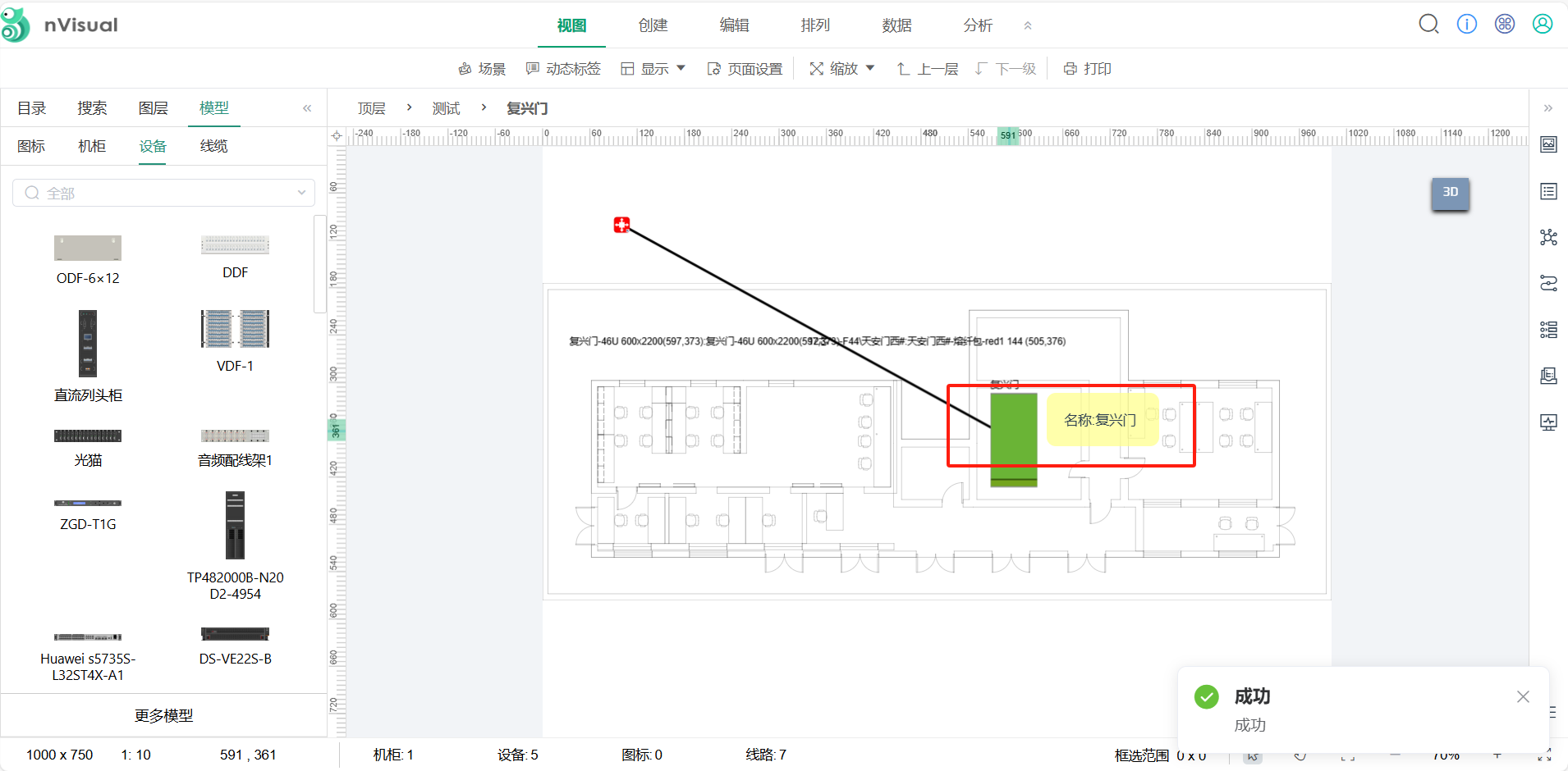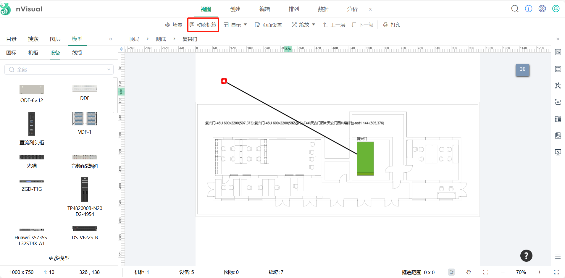 3D场景下机柜之间的连线就直接两点连接直线,是吗?
