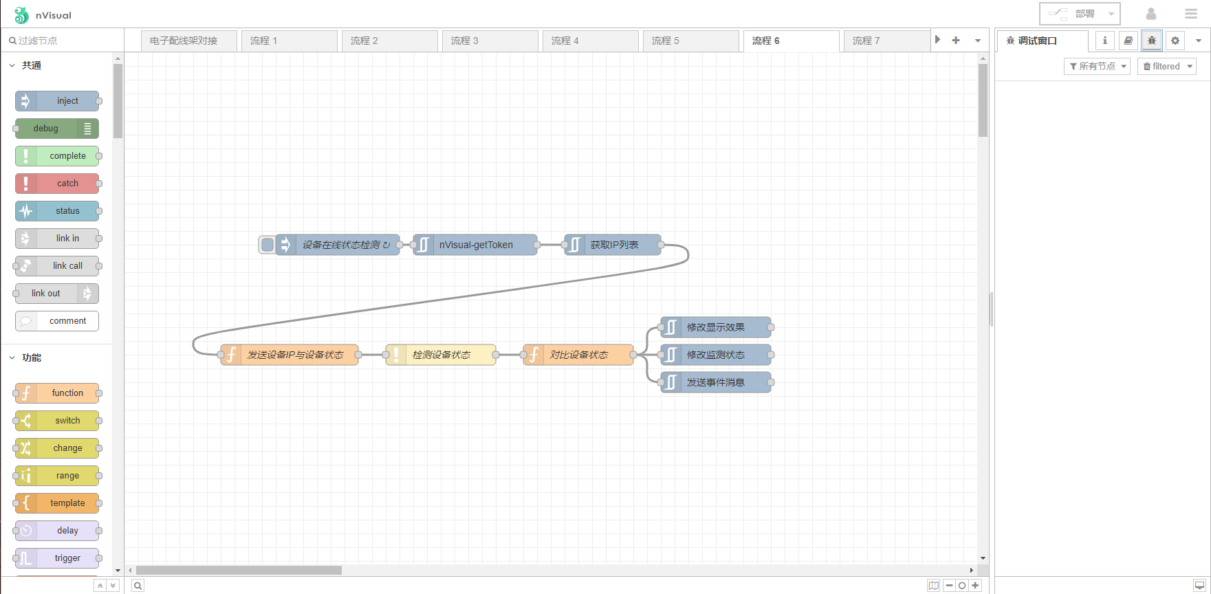 接下来我们详细介绍一下如何通过node_red来实时采集nvisual设备在线状态数据。