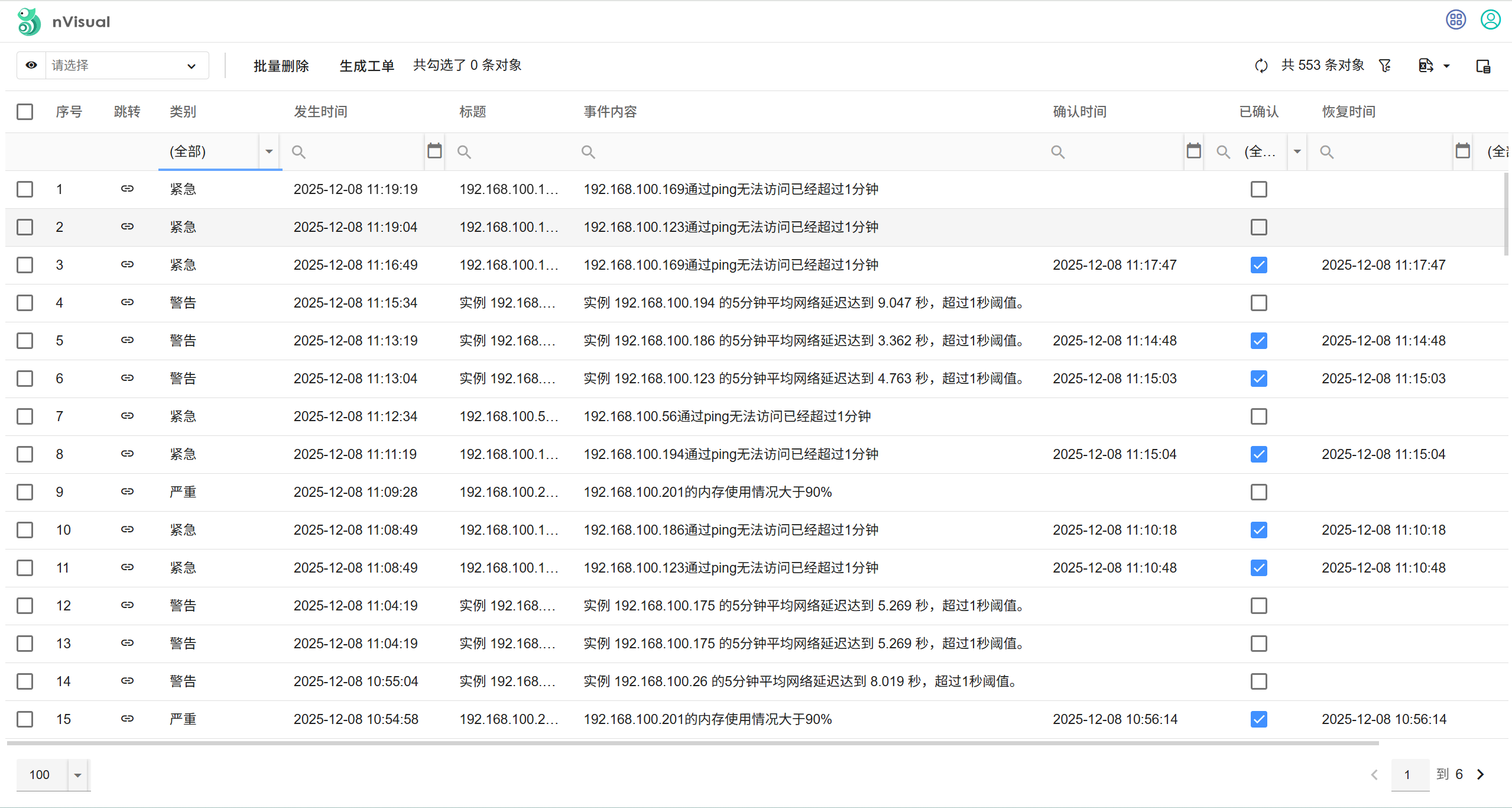 nVisual监测模块采用Prometheus监控采集组件,针对nVisual集成预配置了一些参数(如默认监测告警推广送地址等),如需进一步了解Prometheus相关配置,请参考Prometheus相关资料。