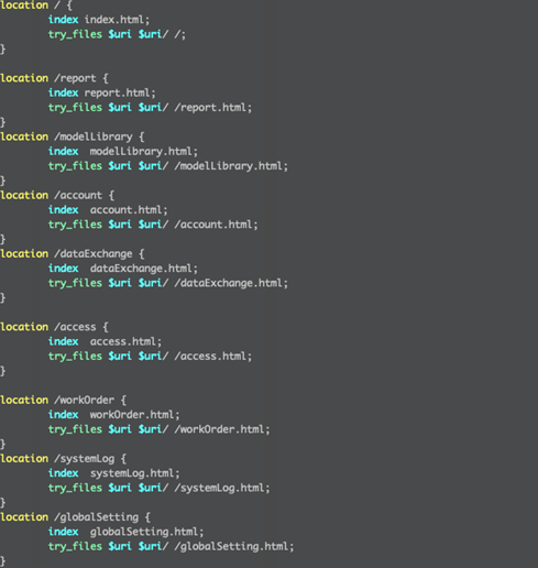 由于nvisual是多页面应用,所以在nginx配置上我们也进行了多个路由的设置。接下来依次说明。