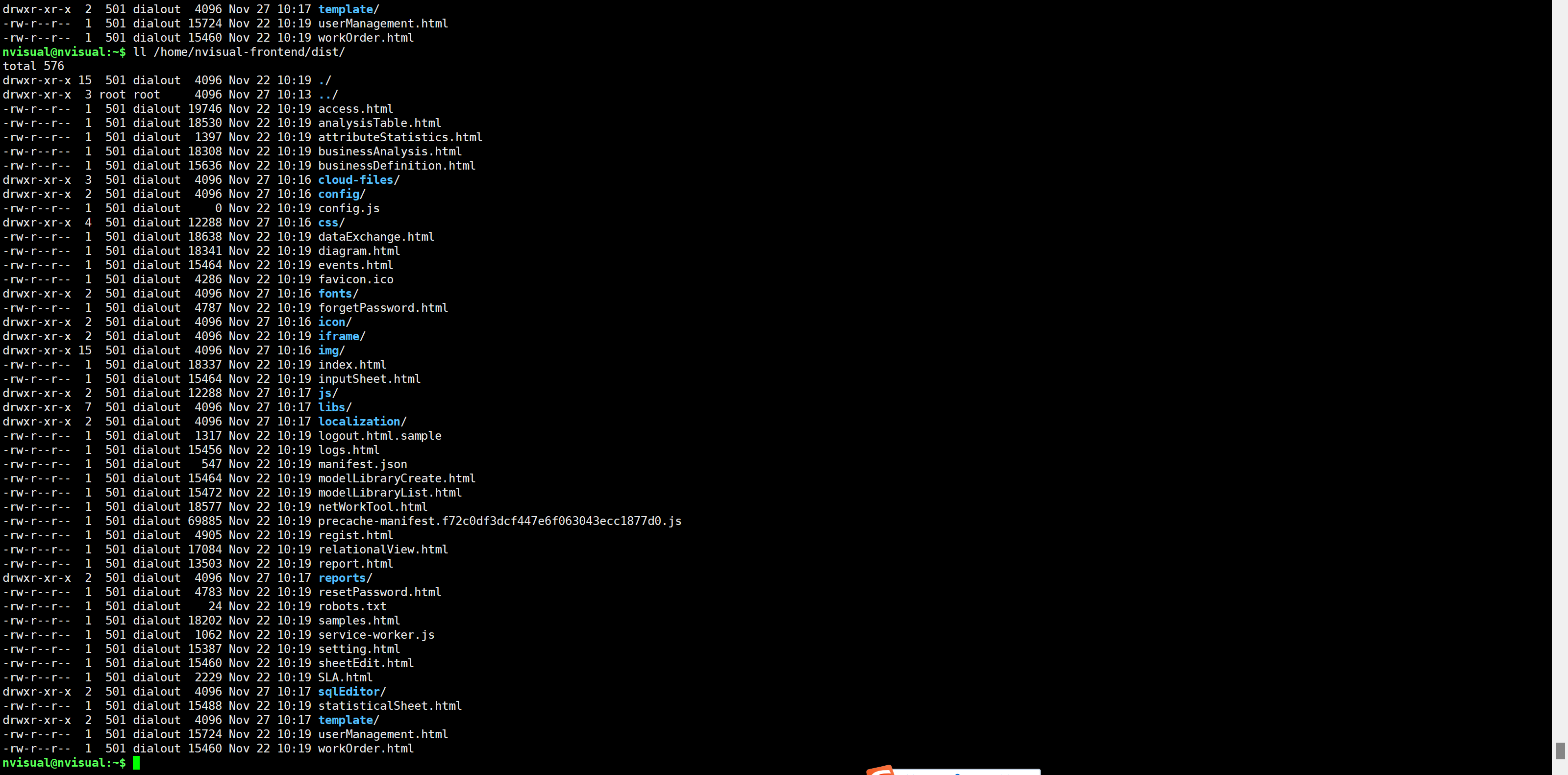 #Linux环境下,前端路径为/home/nvisual-frontend/