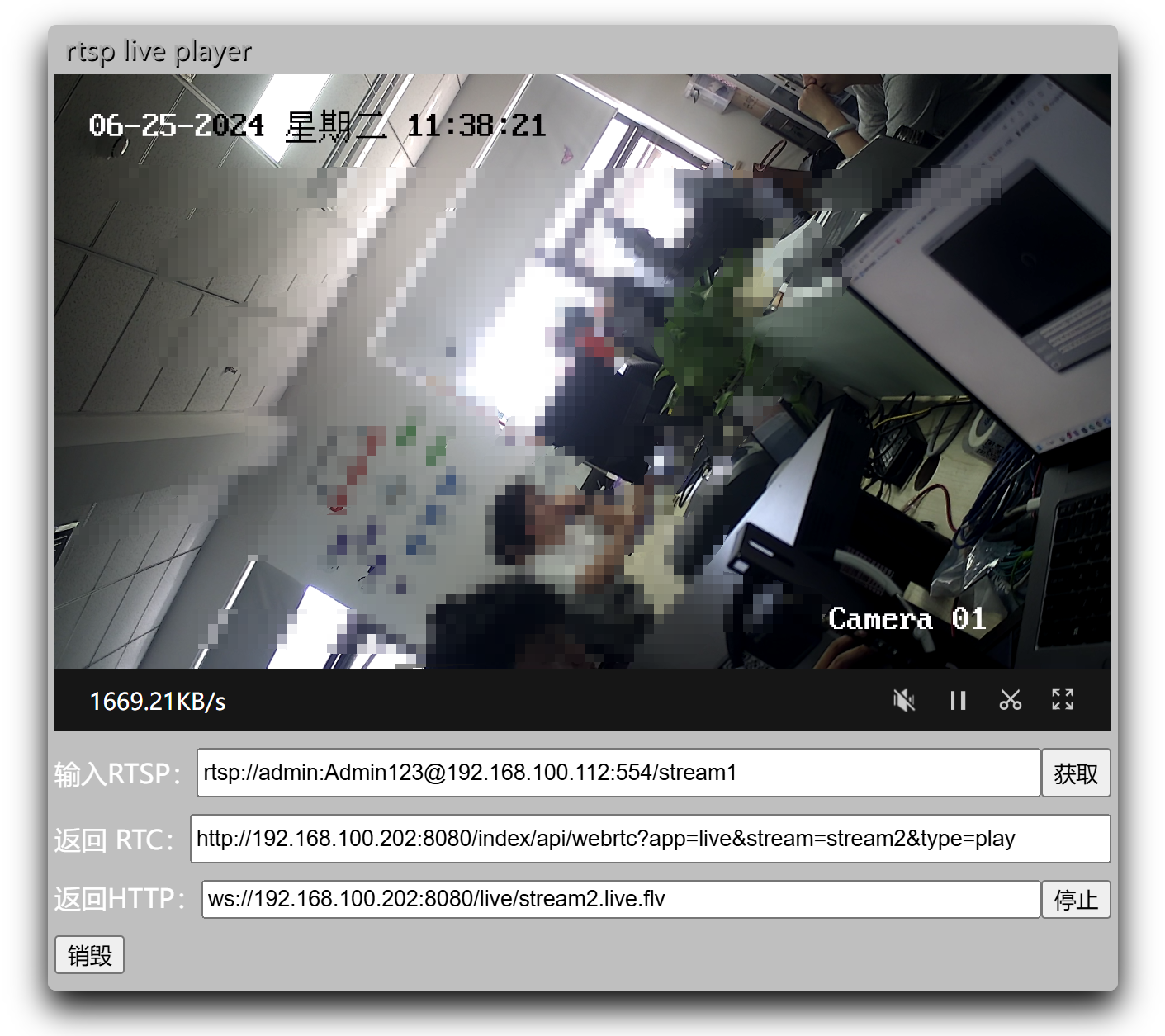 以此项目测试摄像头地址为例:rtsp://admin:Admin123@192.168.100.112:554/stream1