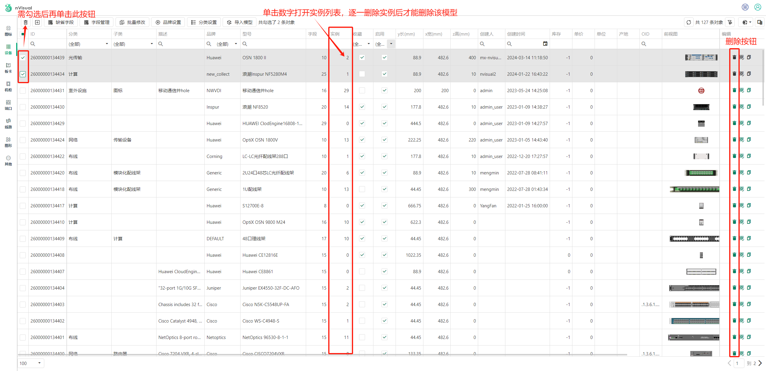 如模型有实例存在,需先删除实例才能删除该模型。该操作无法撤销,请谨慎操作。