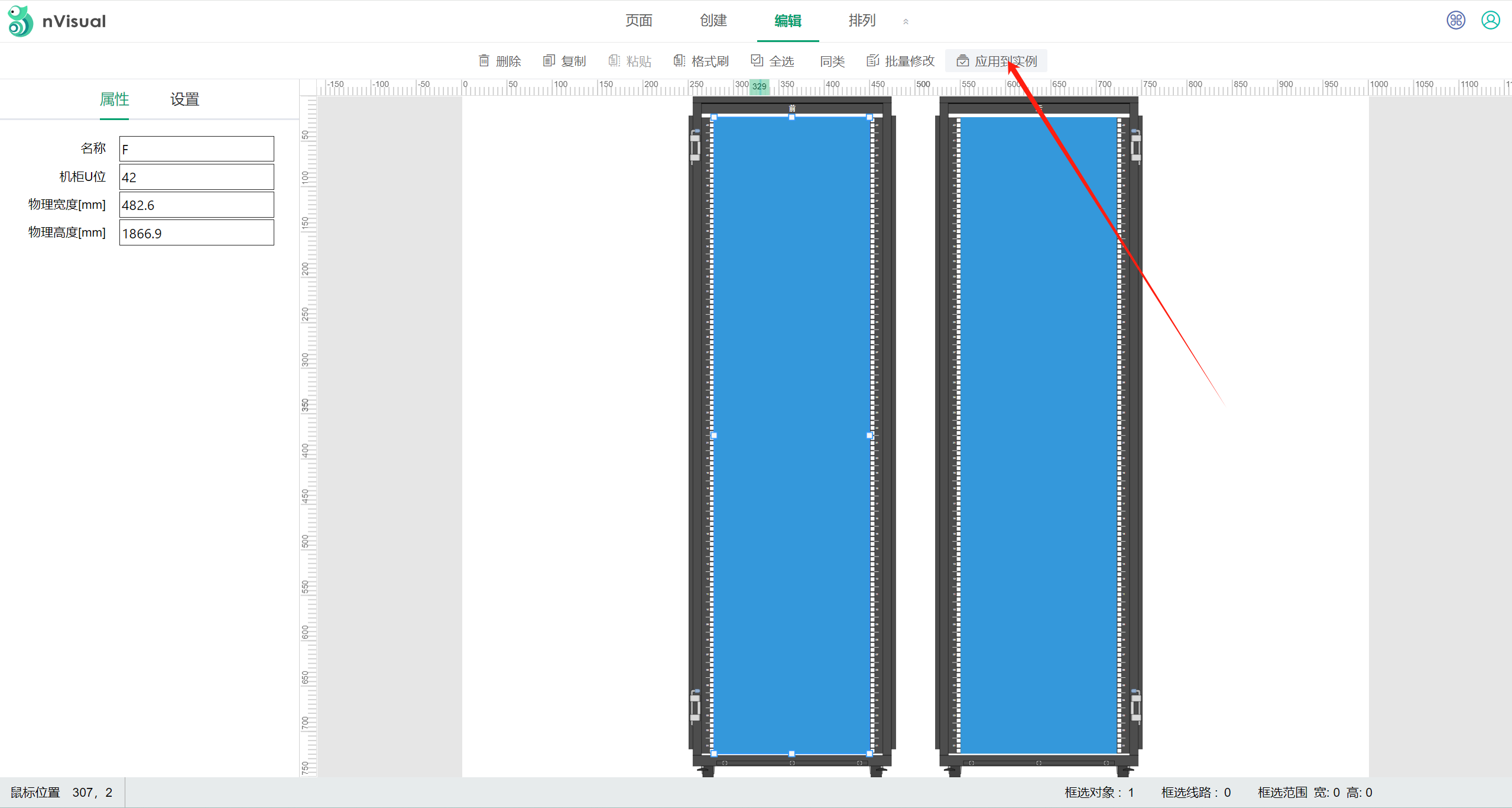 注意:在已有实例的情况下应用机柜,会影响实例的机柜视布局。