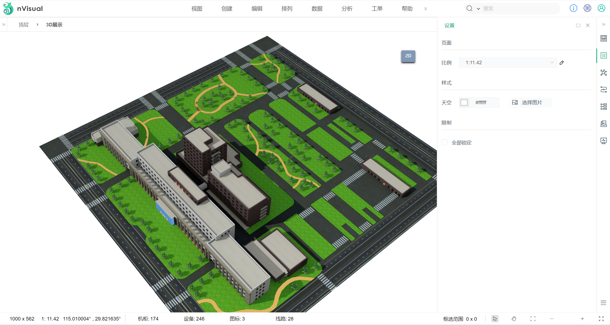 3D场景下机柜之间的连线就直接两点连接直线,是吗?