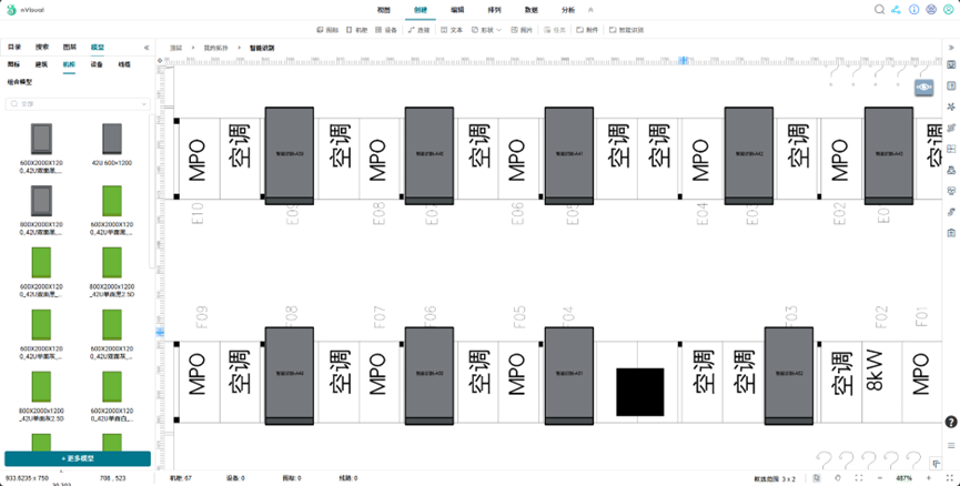 创建主要功能是在视图区创建各种实例对象。nVisual的实例对象包括图标、建筑、机柜、设备、连接、文本、形状、图片、任务、附件共9类。