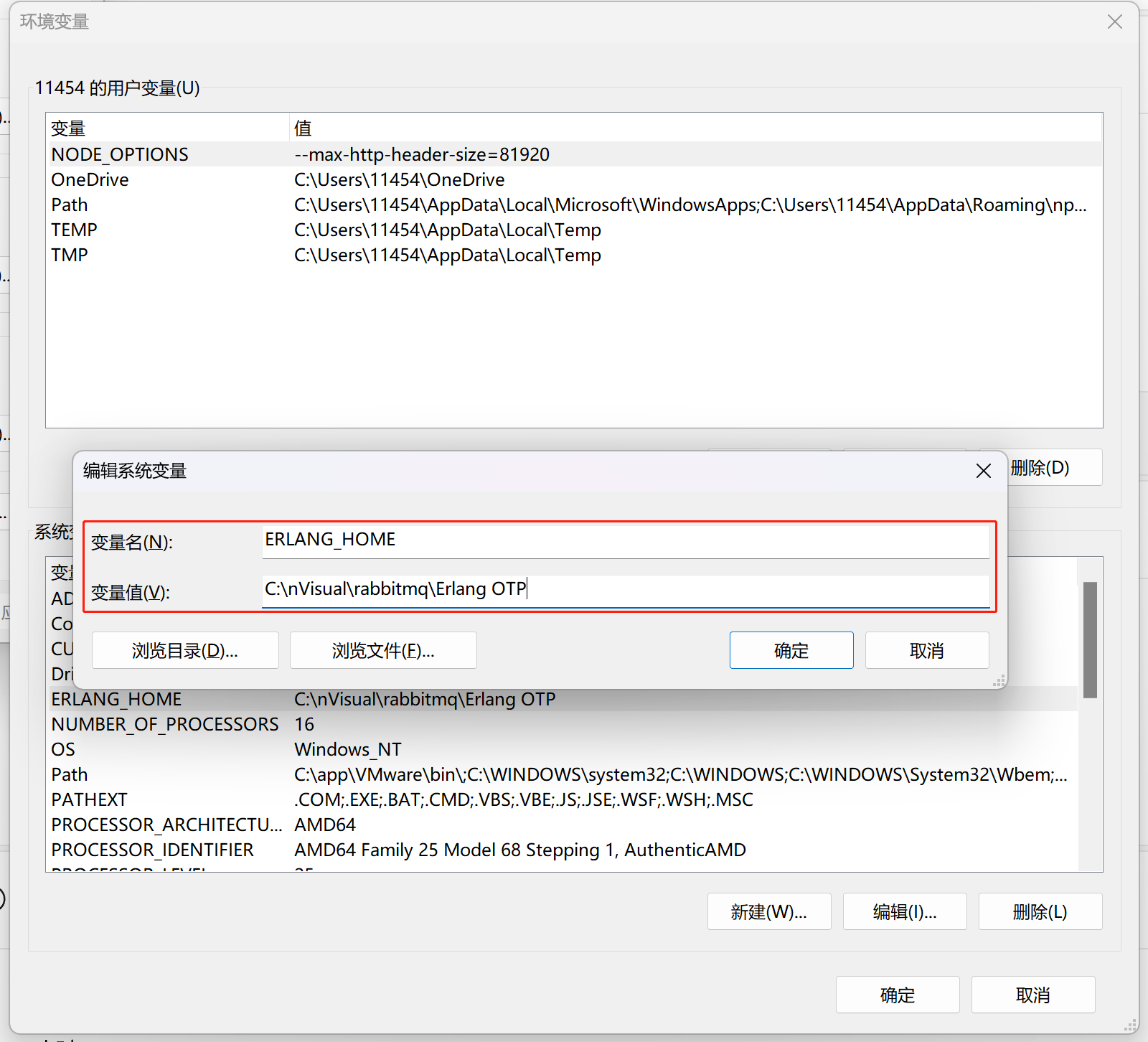 变量值:C:\nVisual\rabbitmq\Erlang OTP
