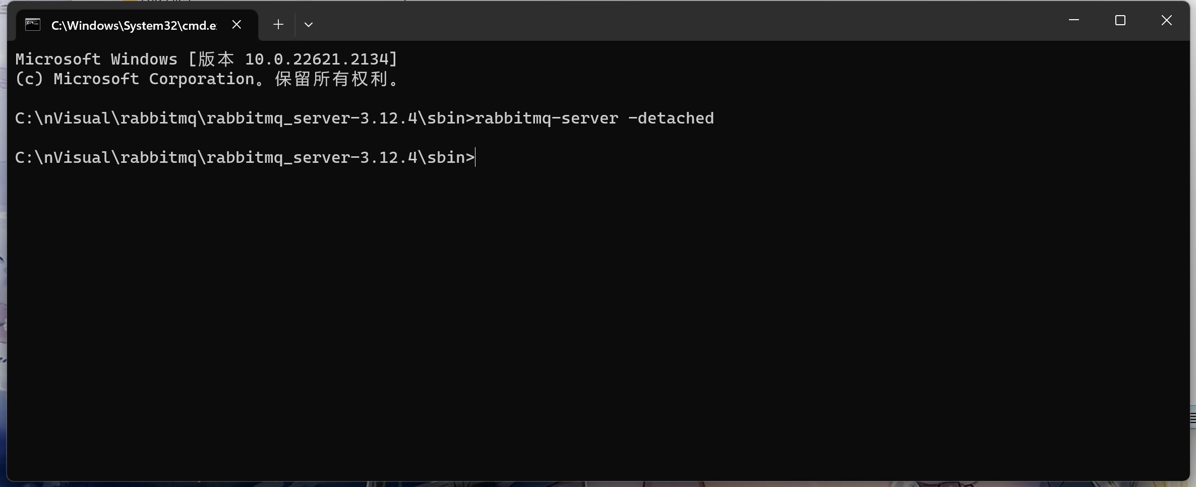 输入 rabbitmq-server -detached 启动rabbitmq,并以守护进程的方式,运行在后台