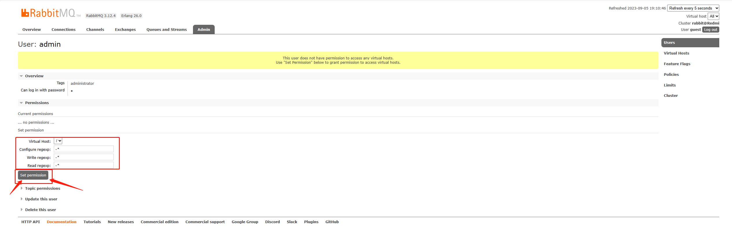 创建好的用户,没有虚拟机权限,点击名称设置权限。