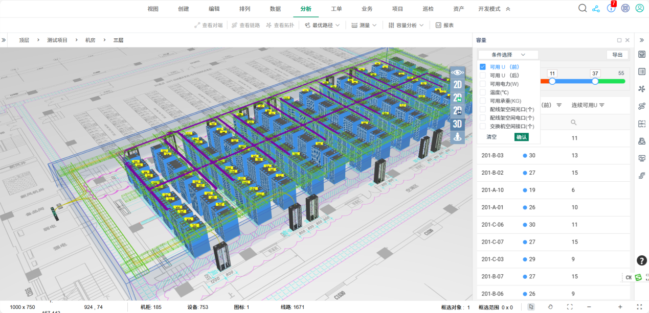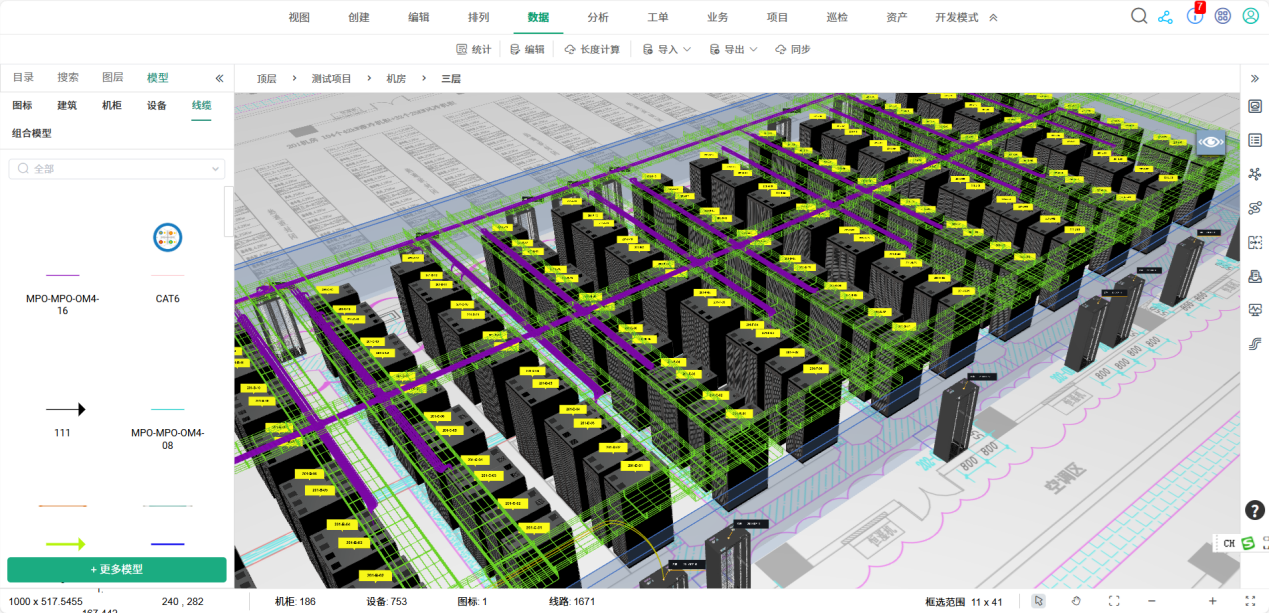 实现数据中心机房布线与链路的设计、查询、分析管理。