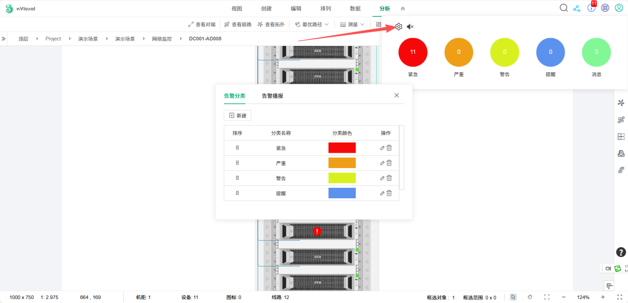 实现从园区-建筑-楼层-机房-机柜-设备-板卡-线缆的2D/3D可视化。