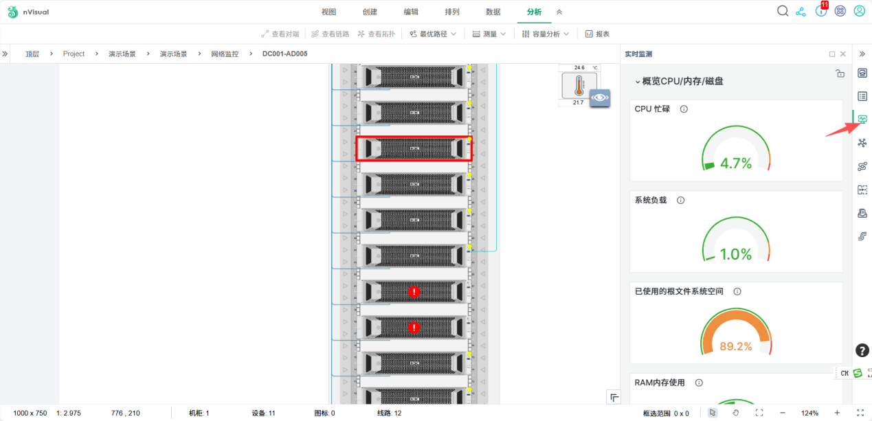 分析——机柜分析,从多维度对机房机柜容量进行统计分析。