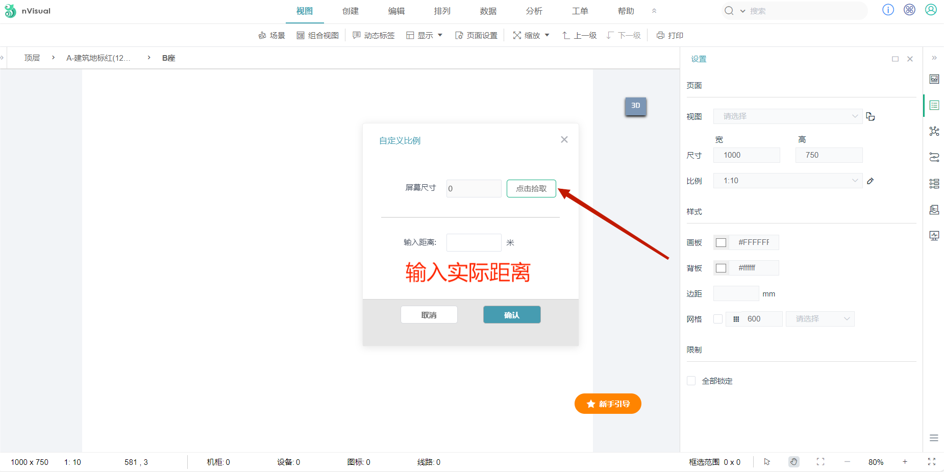 步骤2:点击拾取,输入实际距离,系统会自动生成比例尺